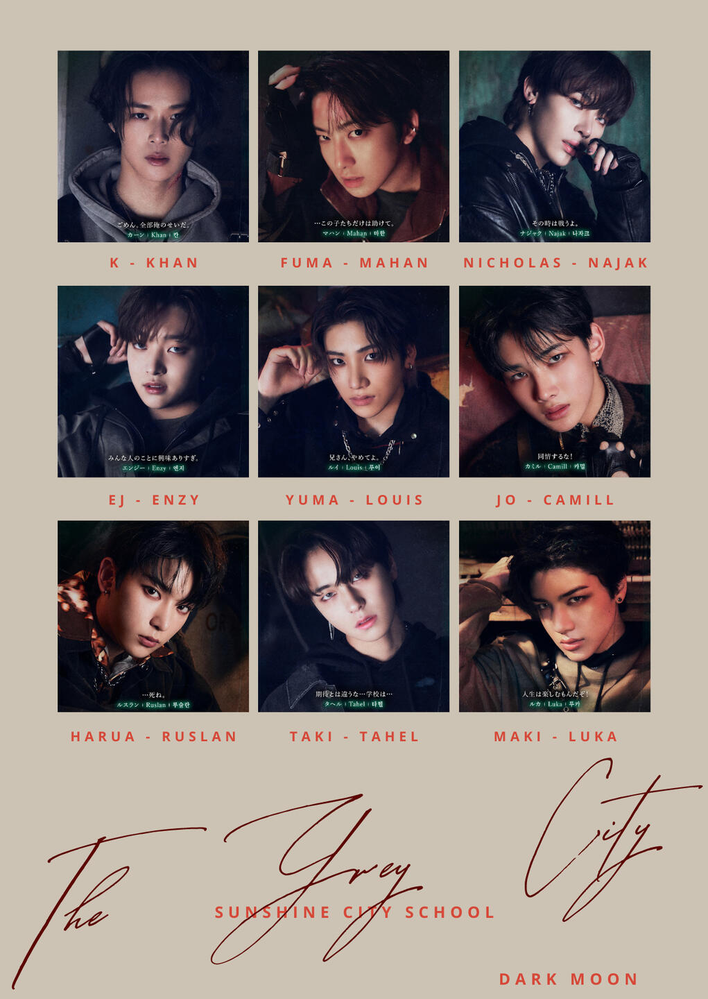 - CALL CALL CALL!: Fuma (leader), Nicholas, Junwon, Yejun, Minhyung.